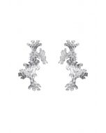 Veistoksellisen, mutta lehtimäisen kevyen korvakorun muoto, hienostunut pintastruktuuri ja hopean viileä hohde houkuttelevat tulemaan lähelle ja katsomaan tarkasti. Tappikiinnitys. Korvakoruihin on saatavissa lisäosat, joilla voit tehdä korvakoruista vieläkin näyttävämmät. Lisäosiin juotettu hopealankatappi pujotetaan korvakorun taustapuolella olevaan pieneen silmukkaan, ja kiinnitys varmistetaan pienellä silikonitulpalla. Sekä korvakorut että lisäosat ovat toistensa peilikuvat. Oikeanpuoleisen korvakorun ylä- ja alaosa on merkattu ympyrällä yhdistämistä ja tunnistamista varten. Vasemmanpuoleisessa korvakorussa ei ole merkintää. Korvakorut ja lisäosat saatavissa myös pronssisena.