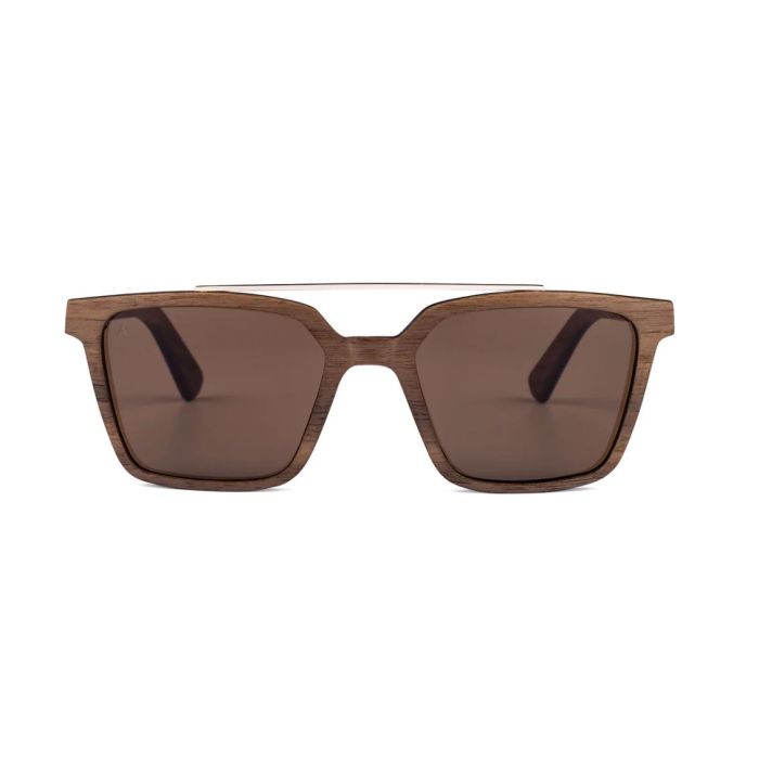 Blake pähkinäpuu aurinkolaseista löytyy tyylikästä särmää. Metallin ja puun yhdistelmä luo modernin kontrastin. Kehykset ovat kauniin ruskeaa pähkinäpuuta.