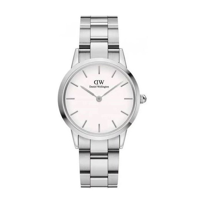 Daniel Wellington Iconic Link naisten rannekello teräsrannekkeella ja valkoisella kellotaululla. Kellon halkaisija on 32mm.