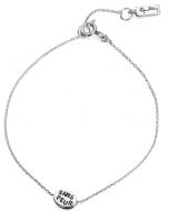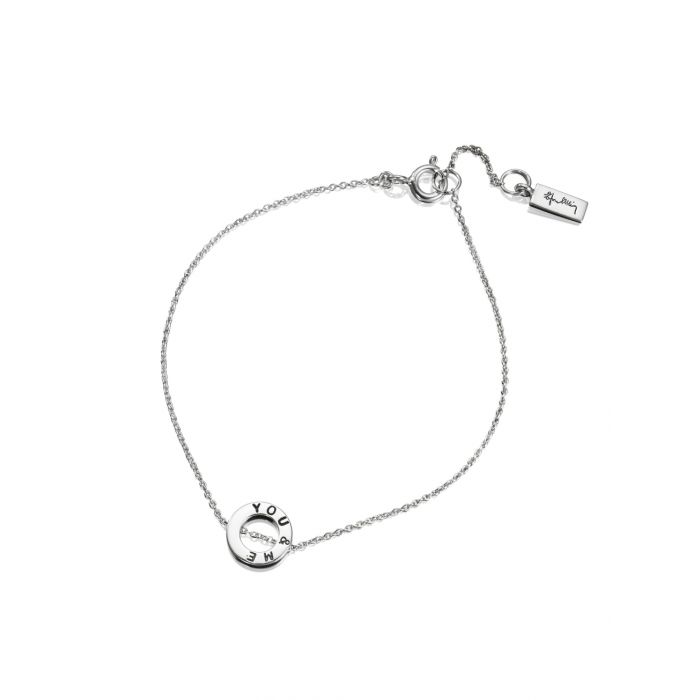 Hopea rannekoru 17,5cm pitkällä ketjulla. Pyöreässä koruosassa lukee ”You&Me”.