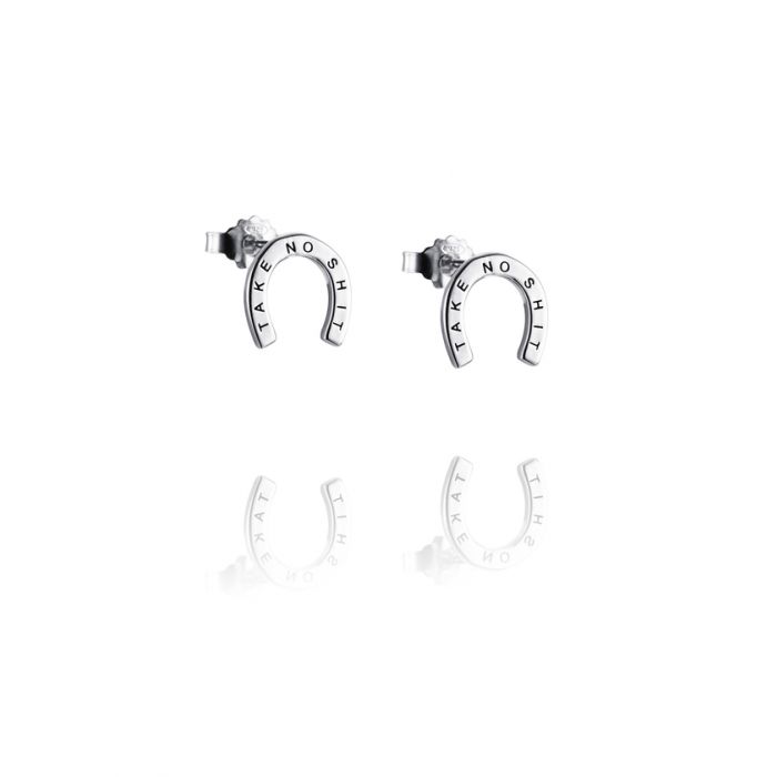 Hopeat Take No Shit-korvakorut tappikiinnityksellä.