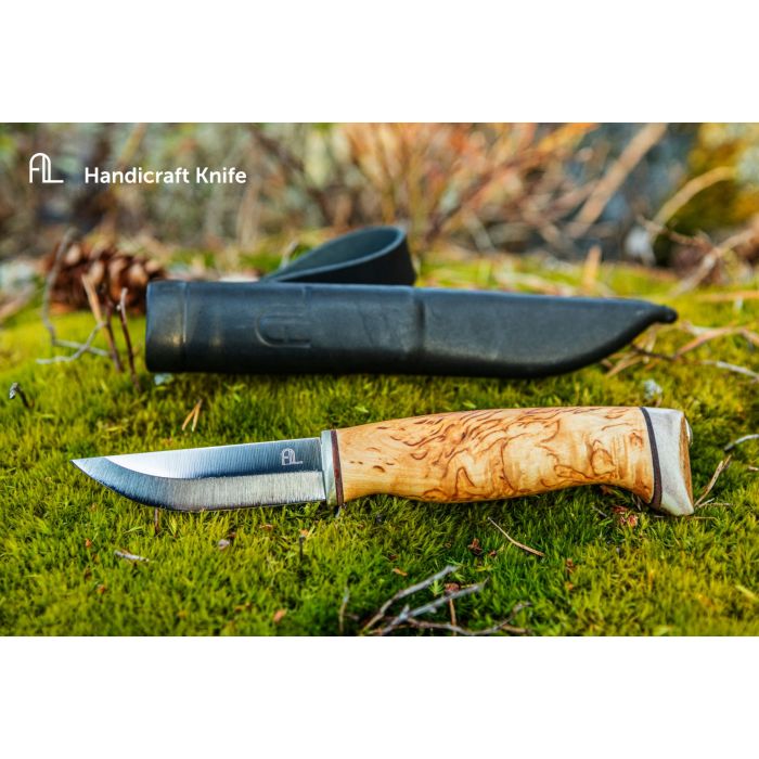 Arctic Legend Handigraft Knife 643067640989 visakoivua ja ruostumatonta terästä. Terän pituus 7,7cm. Valmistettu Suomessa suomalaisista raaka-aineista.