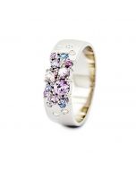 Keto Kevätmalliston 4mm sormus on tyylikkään kaunis. Jalokivien epäsymmetrinen asettelu luo herkkään sormukseen keveän ilmeen.