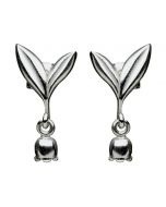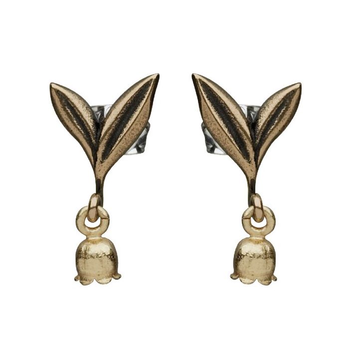 Kielo korvakoruja koristaa pienet kukkahelat, joissa toistuu kansalliskukkamme pienten kellokukkien muoto. Kiillotettua pronssia. Saatavilla myös hopeisena.