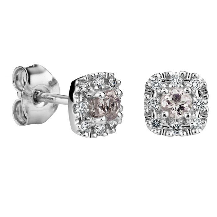 Kohinoor Valerie Cushion timanttikorvakorut 14K valkokultaa. Timantit 16x0,01 H/SI + 3mm morganiitit