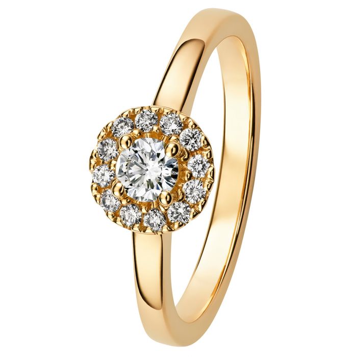 Kohinoor Valerie-sarjan kaunis sormus, jossa pyöreä halo-istutus, jonka keskellä säihkyy 0,18ct timantti. Lisäksi sormukseen on istutettu 12 kappaletta 0,01ct kokoista timanttia. Tämän upean sormuksen on suunnitellut Sami Laatikainen. Tilattavissa myös valkokultaisena.