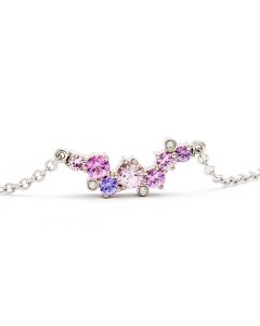 Kukkaniitystä inspiraatiota saaneen Keto-korumalliston muotokieli on runsas – epäsymmetrinen kivien asettelu ja huolella valitut värisävyt luovat kuitenkin herkän ja kevyen vaikutelman. Kotimainen, korkealaatuinen Keto sormus on täydellinen esimerkiksi vihkisormuksena, korvakorut ja kaulakoru täydentävät tyylin!