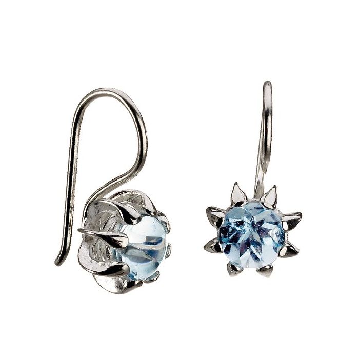Naisen ääni hopeiset korvakorut. Koukku kiinnitys. Sininen topaasi.