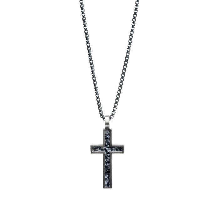 Polku risti oksidoitua hopeaa säädettävällä pituudella 42/45/50cm. Korun koko 30mm.