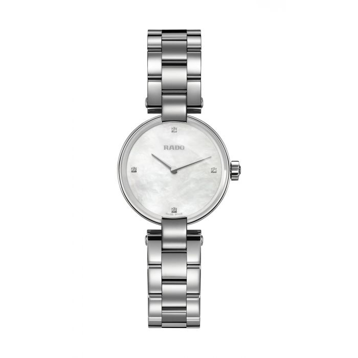 Rado Coupole Diamonds -kellossa on klassisen Radon ajaton ulkonäkö, joka lisää viehätystä ja häikäisyä arvokkailla materiaaleilla ja kellotaulun kimaltelevilla timanteilla.