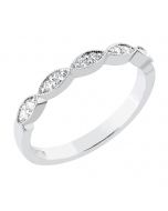 Sormuksen 10 timanttia, yhteispainoltaan 0,14 ct, on istutettu vanhan ajan romanttista tyyliä henkivään krysanttireunaiseen istutukseen.