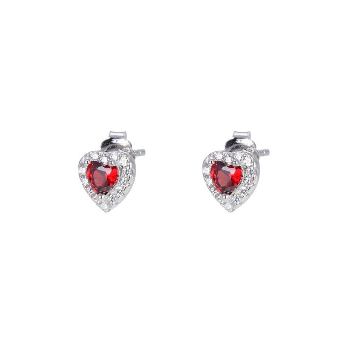 Nämä upeat syämmen muotoiset korvakorut ovat valmistettu hopeasta. Korvakoruja koristaa kaunis punainen zirkonia kivi keskellä sekä kirkkaat zirkoniat sivuilla. Korvakorujen koko on 7 x 7 mm.