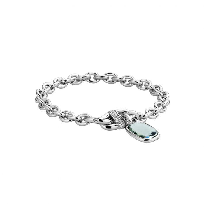 Ti Sento rannekoru rodinoitua hopeaa, jossa kaunis vihreä kristalli ja kirkkaat zirkoni kivet. Riipuksen koko 10,5x16,5mm.