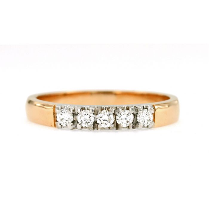 Keltakultainen rivitimanttisormus, jossa kivien yhteispaino 0,25ct. Sormusmallit saatavissa kelta-, valko ja punakultaisina.
