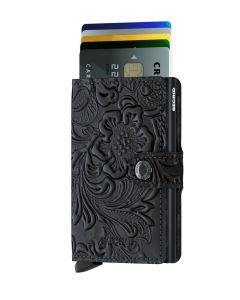Innovatiivinen lompakkomalli, suojaa yksityisyyttäsi ja rahojasi. Alumiininen korttikotelo suojaa kortteja tehokkaasti luvattomalta skannukselta ja fyysiseltä rasitukselta. Sivussa olevasta vivusta vetämällä kortit liukuvat limittäin esiin ja voit vaivattomasti poimia oikean kortin. Secrid-lompakot valmistetaan Hollannissa laadukkaista raaka-aineista.